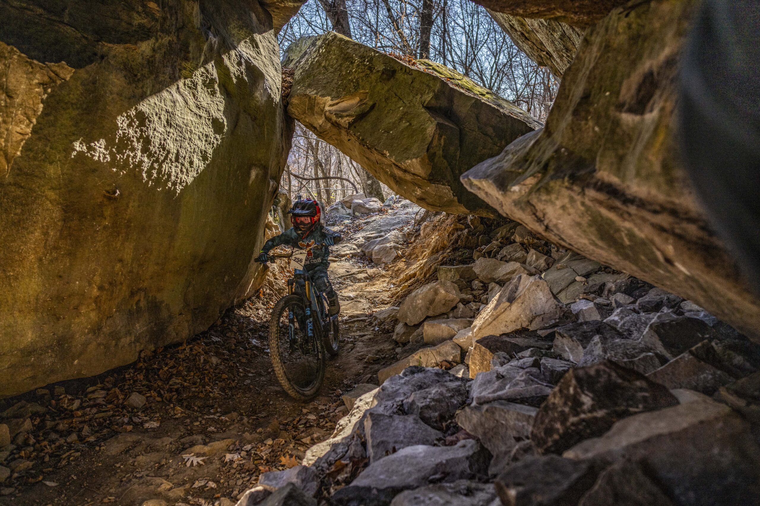 What sets these trails apart is their hand-cut construction. Unlike machine-built trails that use heavy excavators, hand-cut trails are primarily created using manual labor with minimal mechanized equipment. The design and construction were done by Rock Solid Trail Contracting, one of the premier trail-building groups in the world.