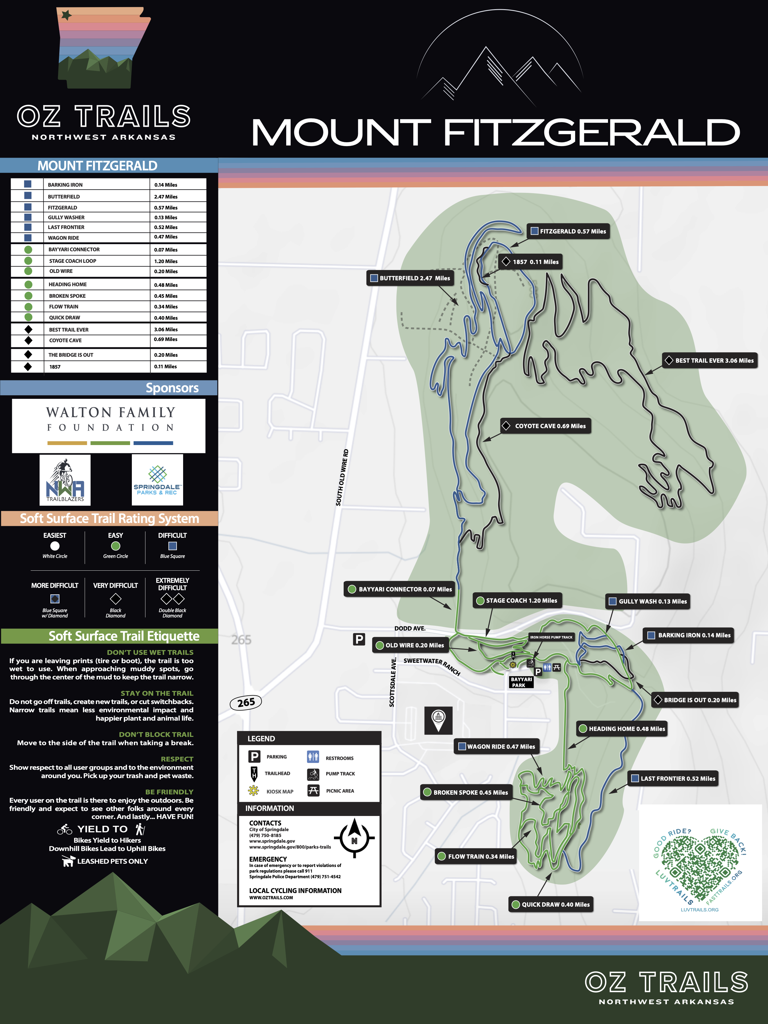 They also packed Fitzgerald with everything from a beginner-friendly miniature flow trail to an expert-only line that includes a 10-foot drop with an 18-foot gap that sends riders ripping into a 30-foot jump. The mountain is also located just minutes from downtown Springdale and the Runway Bike Park, which is home to the largest asphalt pump track in North America.